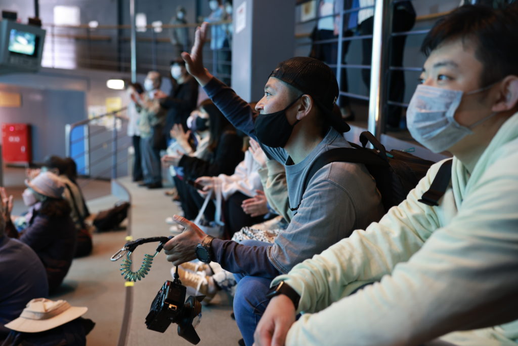 横浜駅7時発ですと、到着後にまずは水族館で散歩したり、一緒に遊ぶイルカたちのショーを観覧席から鑑賞したりして時間を過ごして13時30分スタートがちょうどいい時間ですね