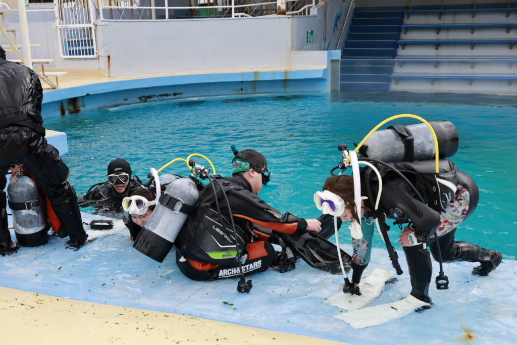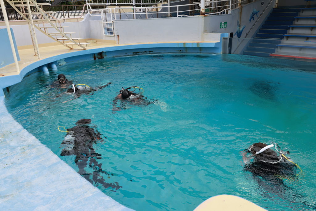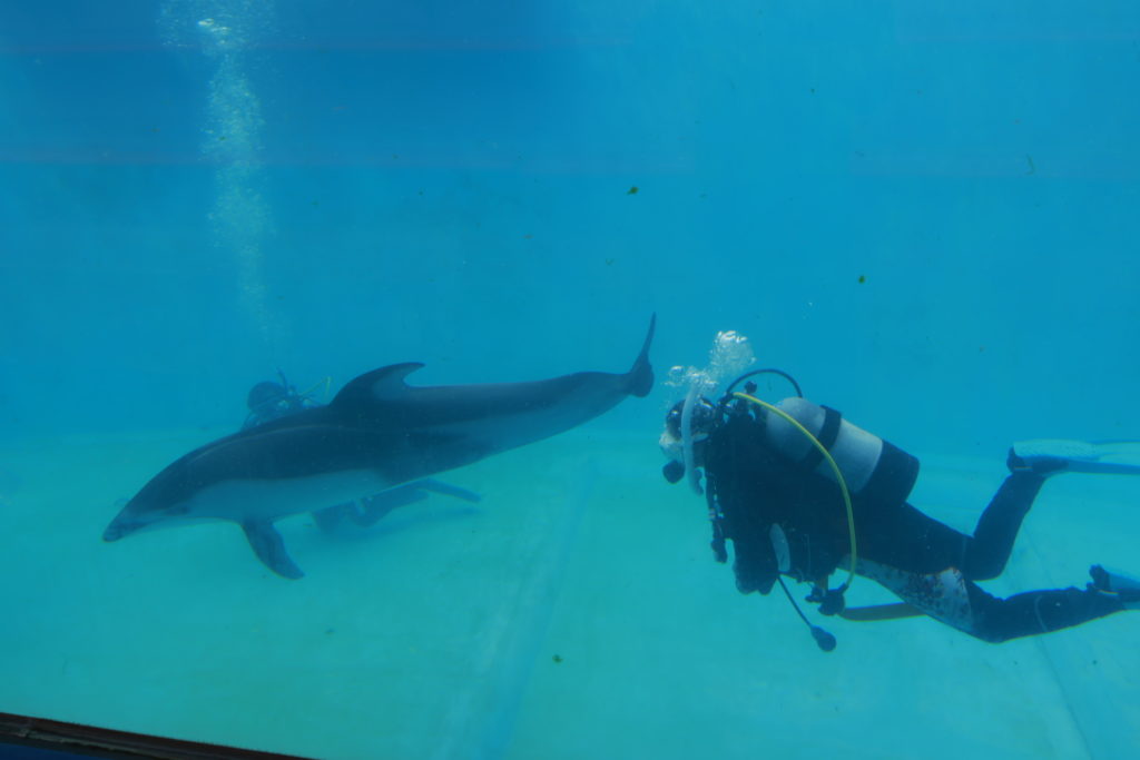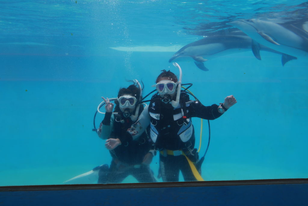 アーチアンドスターズでは横浜駅発着で2頭のカマイルカ(エース&ハート)と一緒にダイビングができるドルフィンダイビングが開催できます